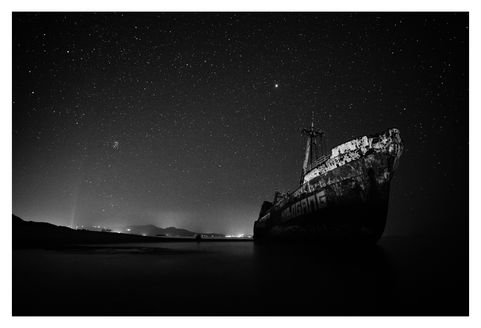 Images during the dark hours. Stars, galaxy and moon in a dialog with structures on earth.